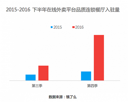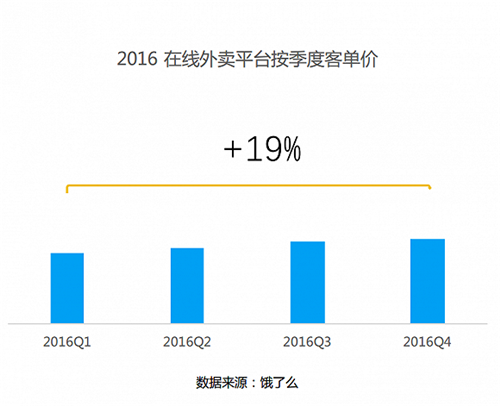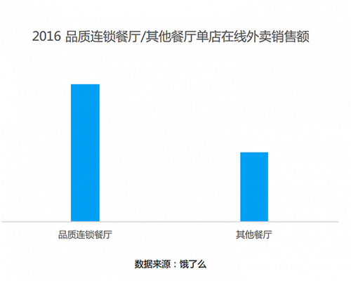 2016年,在線外賣平臺餓了么季度客單價提升19%,與此同時品質(zhì)連鎖餐廳入駐外賣平臺數(shù)量大幅提升,同時營業(yè)額相比普通餐廳也較高。
