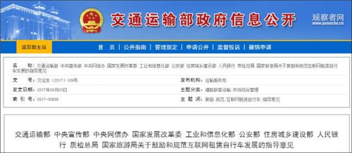 此外,新出臺(tái)的國家共享單車管理辦法,也意味著默許發(fā)展的政策紅利期正在成為過去時(shí)。8月2日,經(jīng)國務(wù)院同意,交通運(yùn)輸部、中央宣傳部、中央網(wǎng)信辦、國家發(fā)展改革委、工業(yè)和信息化部、公安部、住房城鄉(xiāng)建設(shè)部、人民銀行、質(zhì)檢總局、國家旅游局10部門聯(lián)合出臺(tái)了《關(guān)于鼓勵(lì)和規(guī)范互聯(lián)網(wǎng)租賃自行車發(fā)展的指導(dǎo)意見》。