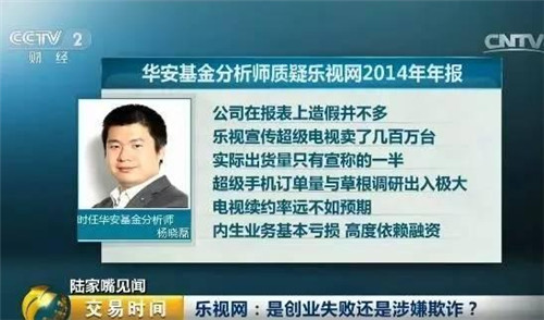 2015年6月,華安基金分析師楊曉磊公開質(zhì)疑樂視2014你年報(bào),他認(rèn)為公司在報(bào)表上的造假并不多,但據(jù)測(cè)算,樂視宣傳超級(jí)電視賣了幾百萬臺(tái),但實(shí)際出貨量只有宣稱的一半、超級(jí)手機(jī)訂單量也與草根調(diào)研數(shù)據(jù)出入極大,電視續(xù)約率遠(yuǎn)不如預(yù)期,內(nèi)生業(yè)務(wù)基本虧損,高度依賴融資。