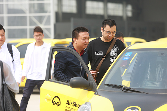 “小黃車”擺放成飛機(jī)形狀,屹立在航空?qǐng)@區(qū)內(nèi),甚為壯觀。吸引了多家媒體記者紛紛試駕試駕,記者們?cè)囻{之后,對(duì)其贊不絕口。