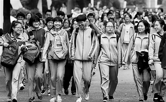 湖州中學(xué)考點,考生面帶笑容走出考場。 陸偉 楊斌英 攝