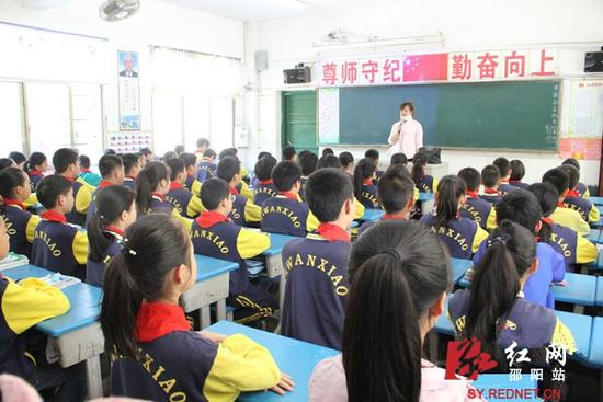 5月9日,邵東縣城區(qū)一完小六年級280班教室里,脖子上戴著頸托的老師李海英,在給學生們上課。都說傷筋動骨一百天,但是李老師在這樣的嚴重傷勢下,只臥床治療二十天多天,病情稍稍好轉(zhuǎn)后,便重返講臺。她用實際行動感動著師生和身邊的每一個人,受到師生、家長和醫(yī)護人員的一致“點贊”。