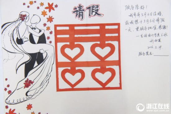 9月19日,在浙江理工大學藝術與設計學院,老師顧紅建正在展示學生們交上來的請假條。這些請假條風格多變,充滿創(chuàng)意,有簡筆畫風格的,也有抽象的。比如有學生畫了一班開走的列車和一個追趕的小人兒,表示趕不上末班車而遲到;有的把假條做成了賀卡,折頁打開一個大紅喜字,畫上浪漫的婚禮現(xiàn)場,用中英文寫上請假“文案”,原來是參加姐姐的婚禮。顧老師說,讓學生制作手繪假條,希望學生們學會在生活中用藝術語言敘事,同時也想幫學生們留下大學生活的回憶。(浙江在線記者 楊曉軒 李翔 于詩奇 攝)