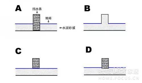 A.鋪地磚的時(shí)候留一條槽,放入擋水條;