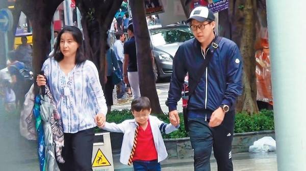 日前下午1點多,霍啟剛變身family man和愛妻帶4歲兒子霍中曦去中環(huán)。一家三口在皇后大道走去上環(huán)方向。因為下了雨,霍中曦穿上了雨靴,媽媽就手拎兩把傘?;魡偞髦鴆ap帽,穿著一身運動服。見霍啟剛不時手抱愛兒,而霍中曦雙眼像極了媽媽;鼻以下就更像爸爸,皮膚雪白,笑得好萌。老公抱著愛子,郭晶晶就在身邊握著霍中曦的小手,逗兒子玩。當天,郭晶晶素顏,容光煥發(fā),面頰飽滿,上身仍有些許“幸福肥”。幸福一家走到中環(huán)廣場準備取車前,霍啟剛放下愛子,和愛妻一人一邊托著小王子?;糁嘘貖A在父母中間瞇眼笑,然后父母有默契地陪著兒子玩起了“人肉秋千”,逗得霍中曦開心大笑,父母也跟著笑,一家三口超溫馨!