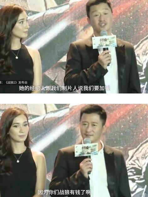 “她的經(jīng)紀(jì)人跟我們的制片人說要加錢,不加錢就不來,她們說因為你們《戰(zhàn)狼》劇組有錢,我們要加價?!?/p>