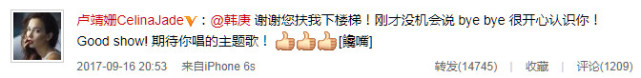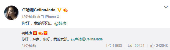 盧靖姍與韓庚微博互動(dòng)