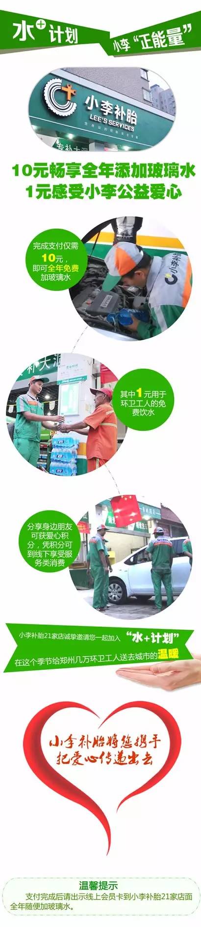 水+計(jì)劃 河南經(jīng)濟(jì)廣播 小李補(bǔ)胎“愛(ài)心公益在行動(dòng)”10元暢享全年添加玻璃水
