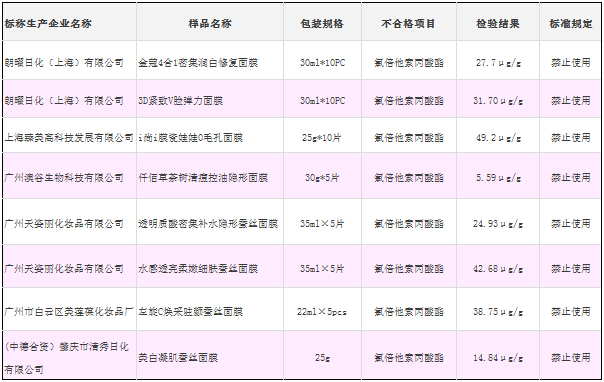 上述產(chǎn)品均檢出含有禁用物質(zhì)氯倍他索丙酸酯。值得注意的是,氯倍他索丙酸酯早已在2007年版的《化妝品衛(wèi)生規(guī)范》中被規(guī)定其為化妝品禁用物質(zhì)。