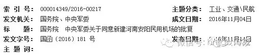國(guó)務(wù)院 中央軍委關(guān)于同意新建河南安陽(yáng)民用機(jī)場(chǎng)的批復(fù)