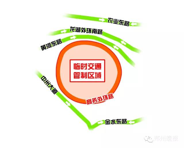 2、機場迎賓大道(貴賓通道至機場高速收費站入口)、中州大道(北四環(huán)至鄭汴路)、迎賓路(中州大道至黃河迎賓館)、金水東路、(京港澳高速至中州大道)、金水路(中州大道金水立交至紫荊山立交立交)、黃河東路(中州大道黃河立交至九如路)、眾意路(龍湖外環(huán)南路至商務內(nèi)環(huán)路)、黃河南路(正光路至商鼎路)、農(nóng)業(yè)南路(正光街至商鼎路)、東風南路(正光街至榆林北街)、商鼎路(東風南路至黃河南路)等道路和路段。經(jīng)過以上道路和路段的車輛和行人,遇到臨時交通管制時,可以提前就近選擇其它道路繞行。