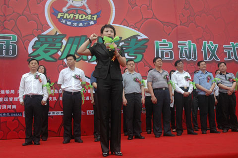 儀式最后,河南人民廣播電臺總編輯 張大寶 宣布河南交通廣播第四屆全省愛心送考大型公益活動啟動