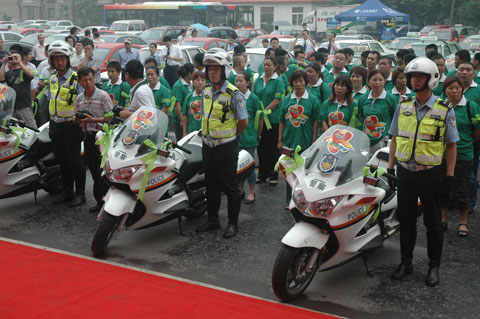 活動現(xiàn)場匯集了許多愛心車友,鄭州市交警支隊也派出三個交警“飛鷹”小組參加啟動儀式