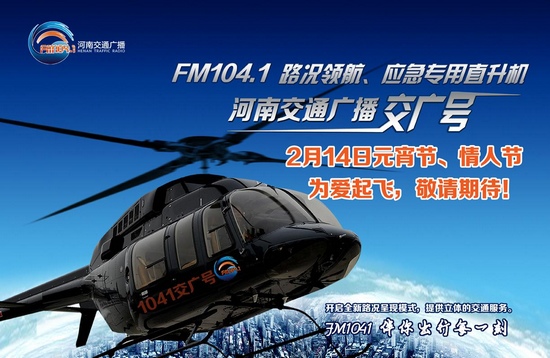 2月14日,河南交通廣播將送來“中西合璧情人節(jié)”重磅大禮——“向愛說sorry”交廣號私人定制浪漫情人節(jié)。當(dāng)天,1041交廣號直升機將再次為愛起飛,全景呈現(xiàn)省會鄭州交通路況,并聯(lián)合二七萬達廣場,提供情人節(jié)私人專機浪漫飛行,現(xiàn)在參與河南交通廣播節(jié)目微信互動,就有機會和你的TA坐上1041交廣號專機,獨享二人世界,不妨來一場浪漫的空中求婚儀式。