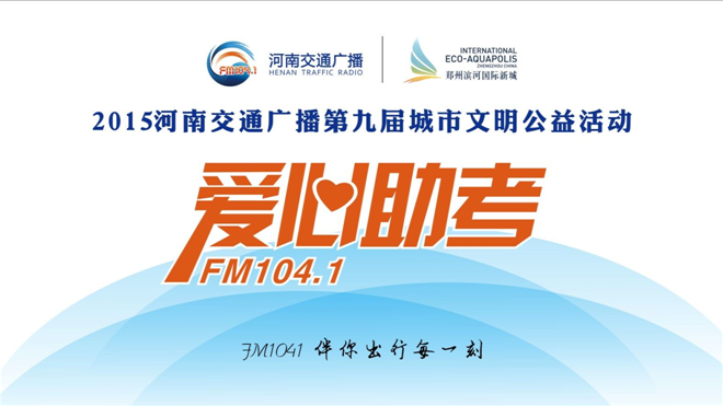 2015河南交通廣播全省“愛心送考”華美升級為 “愛心助考”,除了常規(guī)車友領(lǐng)取愛心助考、家有考生車貼外,領(lǐng)取時間和地點后期會公布,敬請鎖定FM104.1。