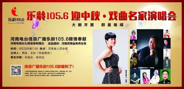 河南電臺(tái)信息廣播樂(lè)齡105.6傾情奉獻(xiàn)《樂(lè)齡1056迎中秋戲曲名家演唱會(huì)》將于9月23日晚19:00在河南省人民會(huì)堂激情開唱!