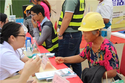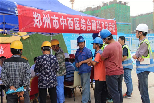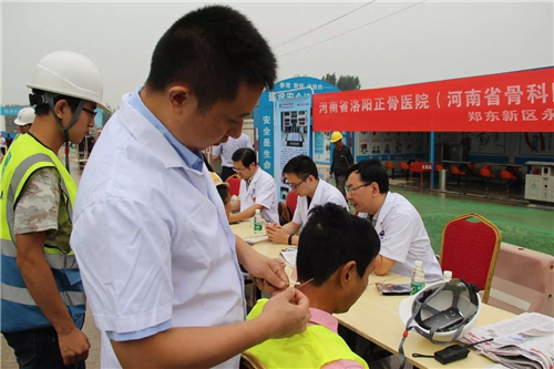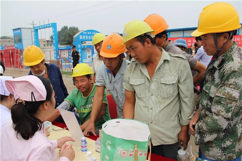 一大早,五大醫(yī)院的白衣天使們,就來到了中建三局鄭州航空港棚戶區(qū)改造的施工現(xiàn)場(chǎng)。開始準(zhǔn)備工作,希望能夠更好地為建筑工人們做健康檢查。