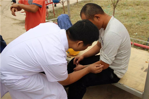 當(dāng)天前來求診的工友絡(luò)繹不絕,專家們耐心解答工友疑問,傳授醫(yī)療保健知識(shí),指導(dǎo)群眾平常要注意身體保健,養(yǎng)成良好的飲食習(xí)慣和生活習(xí)慣,甚至還為頸椎病患者、腰椎病患者進(jìn)行即時(shí)針灸。義診從上午10點(diǎn)開始,一直開展到中午12點(diǎn)多,就診人群才慢慢散去,專家們?cè)缫佯I得饑腸轆轆。專家們精湛的醫(yī)療技術(shù),耐心細(xì)致的服務(wù),受到建筑工人們的一致好評(píng)。