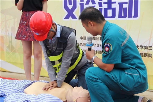 醫(yī)生們一邊操作,一邊講解,工人們有不明白的,還可以現(xiàn)場(chǎng)提問。幾乎每一位認(rèn)真學(xué)習(xí)的建筑工人都想一試身手,醫(yī)生則在一旁一對(duì)一指導(dǎo)。