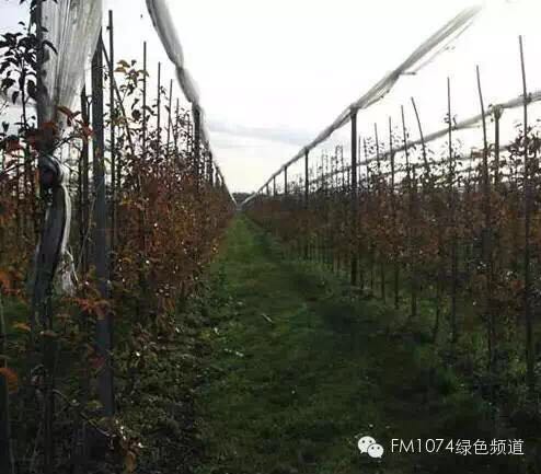 在史蒂凡的果園看到,一排排3年生的蘋果樹整齊排列,十分規(guī)整。