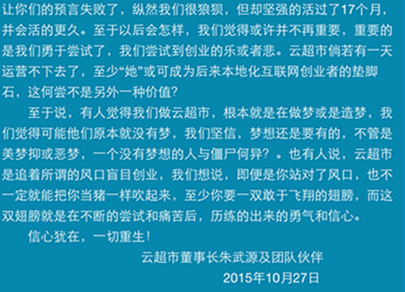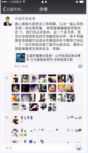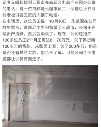 最近一周,在鄭州電商圈悄悄地流傳著這個(gè)消息……云超市倒閉了?董事長朱武源失聯(lián)了?讓我們看一下26號(hào)各媒體發(fā)出的消息:
