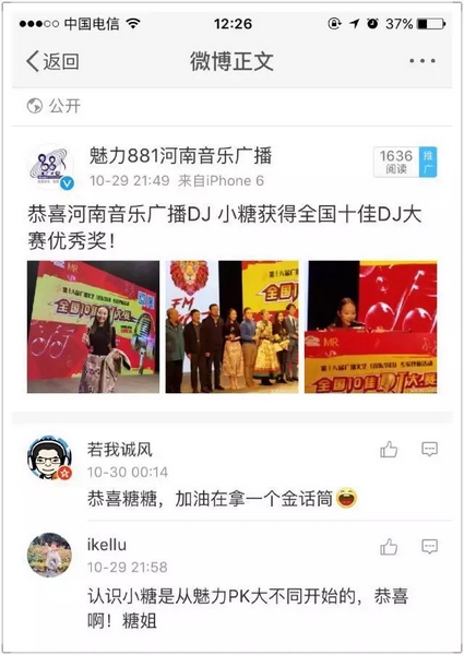 魅力881河南電臺音樂廣播DJ小糖榜上有名