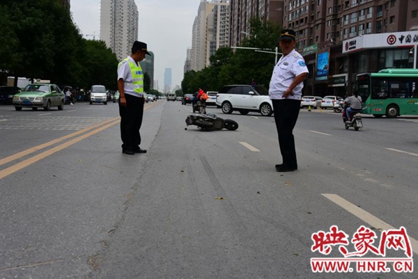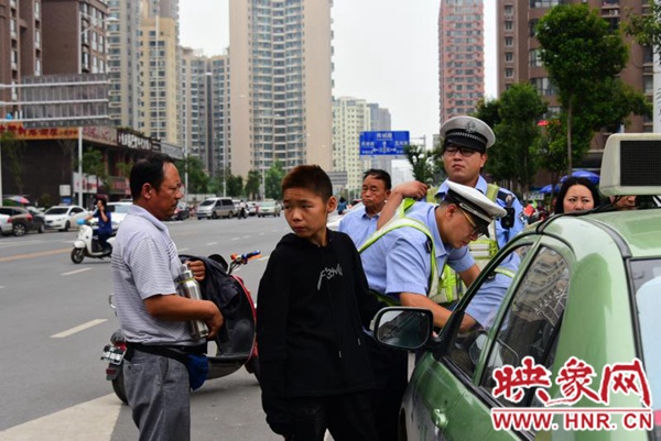 映象網(wǎng)快訊(記者 邱延波 文/圖)9月5日中午12時許,鄭州市福元路上,一輛電動車疑與出租車發(fā)生碰撞,電動車上的15歲女生倒地后昏迷不醒。隨后,出租車離開現(xiàn)場,熱心市民騎電動車狂追涉嫌肇事的出租車并將其攔下。