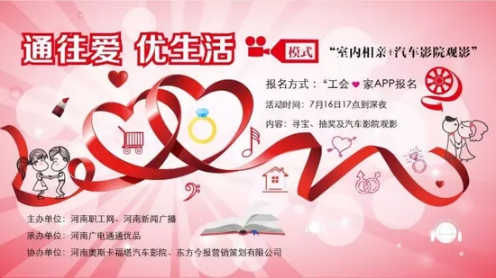 河南新聞廣播聯(lián)合河南省總工會(huì)職工網(wǎng)、河南廣電通通優(yōu)品、河南奧斯卡福塔汽車影院等多家單位,為廣大聽(tīng)眾、單身職工舉辦一期攜手憧憬新生活,體驗(yàn)高品質(zhì)生活為主題的相親活動(dòng)——“通往愛(ài),優(yōu)生活”。