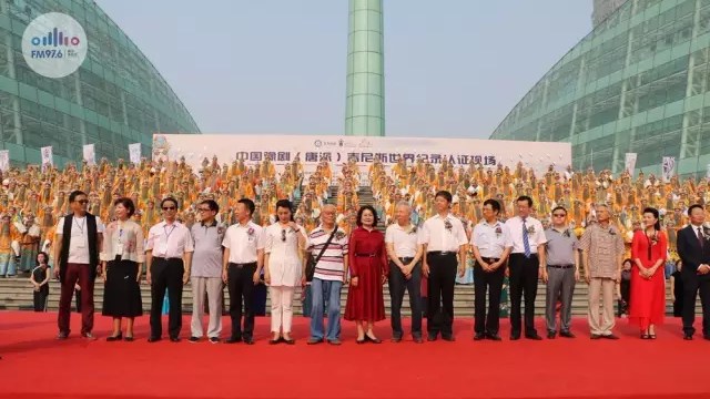 432名專(zhuān)業(yè)演員和票友身穿龍袍同時(shí)演唱唐派名劇選段,創(chuàng)造新的吉尼斯世界紀(jì)錄。
