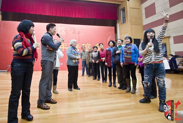 12月28日,一臺由河南藝術(shù)家及戲迷共同參與的新春聯(lián)誼會在河南廣播大廈舉行。本次活動由河南電臺戲曲廣播、戲曲出版網(wǎng)共同舉辦。聯(lián)誼會上,老中青三代名家與戲迷歡聚一堂,氣氛異常熱烈。曾經(jīng)在電影《朝陽溝》中飾演拴保娘的豫劇名家高潔、在電影《扒瓜園》中飾演國英的越調(diào)名家劉琳,中國戲劇梅花獎得主楊帥學(xué)、申小梅,豫劇《朝陽溝》中新一代“拴?!钡娘椦菡呤⒓t林,為現(xiàn)場熱情的戲迷表演了各自的拿手好戲。藝術(shù)家的精彩演唱博得現(xiàn)場觀眾叫好聲、掌聲不斷,戲曲名家與戲迷共同參與的互動游戲使得本次聯(lián)誼會高潮迭起……當(dāng)豫劇大師馬金鳳的身影出現(xiàn)在大屏幕上時,現(xiàn)場一片安靜。今年90高齡的馬金鳳大師在聽說戲迷聯(lián)誼會舉行的消息后,特別送來了新年的問候和祝福,馬老的祝福視頻播完,激動的戲迷爆發(fā)出一陣熱烈的掌聲……戲迷趙錢孫(網(wǎng)名)專程從北京趕來參加活動,這位小伙子是越調(diào)藝術(shù)的忠實的支持者,2007年他自費創(chuàng)辦了中國越調(diào)網(wǎng),在宣傳和推介越調(diào)劇種方面做出了杰出貢獻(xiàn)。聯(lián)誼會上,他和其他四位越調(diào)戲迷自拉自唱了越調(diào)申派名段《收姜維》中的“四千歲你莫要羞愧難當(dāng)”,博得了現(xiàn)場觀眾的熱情掌聲。85歲的戲迷、著名戲曲活動家劉建勛老師為表達(dá)激動的心情,特別為本次聯(lián)誼會寫了一首五言律詩,獻(xiàn)給熱情的戲迷觀眾。 “歲末二十八,大地又回春。戲迷慶元旦,賓客多如云。久別重逢日,相見格外親。你拉我來唱,鄉(xiāng)音暖人心。唱出心坎語,唱出好精神,唱出凌云志,唱響河南人。共同來祝愿:活過一百春!聯(lián)誼會結(jié)束后,很多觀眾意猶未盡,久久不愿離去,他們紛紛與自己喜愛的戲曲名家溝通交流、合影留念。多位戲迷在接受采訪時說:感謝戲曲廣播舉辦了這次聯(lián)誼會,不僅給戲迷提供了交流的平臺,而且拉進(jìn)了戲迷與名家的距離……(本次活動部分照片由小草提供)