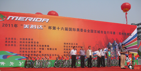 2011年5月28日,由中國奧委會主辦,鄭州市體育總會、鄭州市總工會承辦,鄭東新區(qū)教育文化體育局、美利達自行車(中國)有限公司、河南電臺戲曲廣播、河南體彩管理中心鄭州東區(qū)分中心、華北水利水電學院、鳳凰網、鄭州太古可口可樂有限公司、新華人壽保險有限公司河南分公司協(xié)辦的第十六屆國際奧委會主席杯全國百城市自行車賽鄭州預賽區(qū)的比賽在鄭東新區(qū)的商務內環(huán)公路舉行。