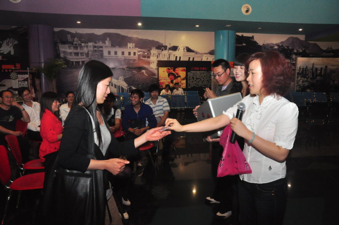 2010年5月8日上午10點(diǎn),河南電臺(tái)旅游廣播FM99.9《故事大秀場》聽友觀影團(tuán),在鄭州百盛6樓的鄭州橫店影視電影城如期舉行。美女主持小佩、菲楊聯(lián)袂登場,與聽眾朋友精彩互動(dòng),現(xiàn)場有獎(jiǎng)問答,鄭州橫店影視電影城也送出了各種精美禮品!互動(dòng)期間來自安陽的聽眾非常的幸運(yùn),獲得了本次活動(dòng)的大獎(jiǎng),一等獎(jiǎng):精美的純銀情侶對戒;還有2張價(jià)值45元的橫店影城貴賓券!大家?guī)е约旱亩Y物和歡聲笑語,與小佩、菲楊一起在位于鄭州百盛廣場六樓的橫店影城電影城觀看了催淚大片《歲月神偷》,這部影片感動(dòng)了在場的每一位觀眾?;顒?dòng)最后,每位到場的幸運(yùn)聽眾還獲得了鄭州橫店影視電影城贈(zèng)送的寶龍新店“20元現(xiàn)金券”!參與活動(dòng)的所有聽眾都收獲豐厚,真的是滿載而歸呀!在此特別感謝鄭州橫店影視城對本次活動(dòng)的大力支持!故事大秀場我秀我飛揚(yáng)~~~