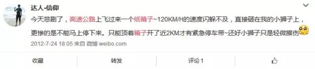 其實(shí)微博上關(guān)于高速公路上撞上紙箱子的事件,屢次發(fā)生: