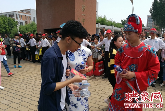 除了特殊的公交助考服務(wù)車,公交一公司1路車長郭磊穿著狀元服為參加高考的考生送去“紅包”,讓不少考生頗感意外。而且引來了不少家長和考生的競相合影。