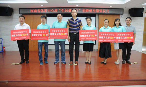 今年的8月8日將迎來我國第8個“全民健身日”,為了有力支持我省的全民健身工作,滿足廣大人民群眾日益增長的健身需求,河南省體育彩票管理中心于7月29日上午向社會團體和今年我省“全民健身日”主題活動舉辦地捐贈了3000件體恤衫,并在河南體彩中心會議室舉行了簡短的捐贈儀式。