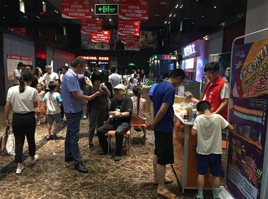 7月底,《戰(zhàn)狼2》一經(jīng)放映,票房即屢創(chuàng)新高,人們都紛紛到電影院觀賞這部精彩的電影。經(jīng)常在鄭州西郊電影院看電影的人們,會發(fā)現(xiàn)很多電影院入口處多了一個新柜臺,體彩“頂呱刮”銷售專用柜臺。銷售桌醒目的顏色、展柜內(nèi)齊全的票種、各色禮品吸引了人們的目光。等待入場的人們紛紛來到銷售桌周圍,了解頂呱刮的玩法,并開始在“頂呱刮”票種里尋寶。