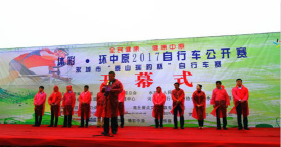 9月27日,以“全民健康,綠色中原”為宗旨的“體彩·環(huán)中原2017自行車公開賽--永城市泰山瑞豹杯自行車賽”在河南省永城市日月湖畔舉行。河南省自行車運動管理中心書記李健、永城市人大常委會副主任駱本京、永城市人民政府副市長吳英杰、永城市教育體育局副局長趙海濤等相關部門負責人以及來自國內(nèi)外600多名運動員和多家媒體參加了啟動儀式,啟動儀式由永城市政府辦公室副主任杜平主持。
