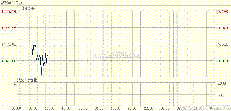 4月23日亞市盤中,現(xiàn)貨黃金于1640美元上方窄幅交投。北京時(shí)間9:40,國(guó)際現(xiàn)貨黃金報(bào)1641.45美元,下跌1.20美元,跌幅0.07%。