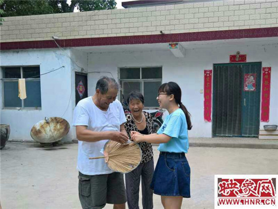 不多時(shí),村委會(huì)的辦公室中就擠滿了聞?dòng)嵍鴣?lái)的村民,志愿者們一一為他們測(cè)量血壓,不少村民離開(kāi)前邀請(qǐng)志愿者們道“孩子,來(lái)俺家,給你們下碗好吃的撈面條”,更多的村民測(cè)完血壓后并未立即離去,而是留下與志愿者們親切交談,村民的質(zhì)樸與志愿者的奉獻(xiàn)精神在這一間小小的辦公室中緩緩交融,在炎炎夏日里帶來(lái)些許清涼。