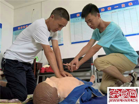 與此同時(shí),地上擺放的人體模型引起了村民的極大興趣,他們?cè)谀P椭車梢蝗?,一邊觀察志愿者的演示一邊提問(wèn)。部分村民還走上前來(lái),在志愿者的指導(dǎo)下練習(xí)剛剛學(xué)到的心肺復(fù)蘇術(shù)。