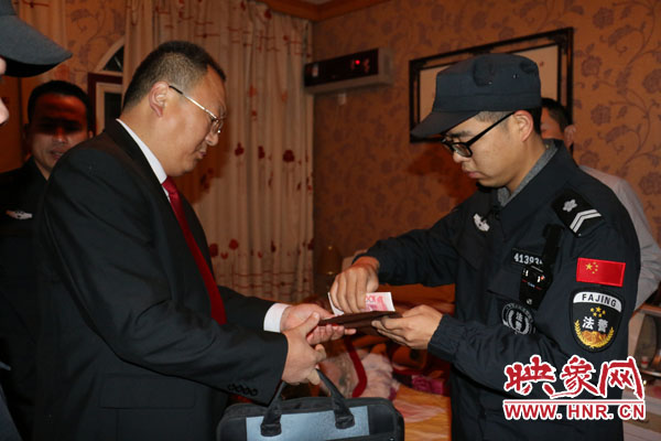 執(zhí)行干警向失信被執(zhí)行人出示工作證。