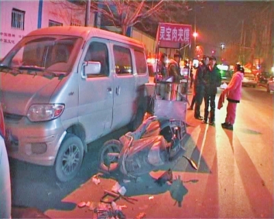 事發(fā)地點位于南關(guān)街與隴海路交叉口向南約100米處,事發(fā)時,路邊有不少小吃攤?!爱?dāng)時豐田車自北向南行駛,先是撞了路邊停著的一輛轎車停了下來。隨后,該車又倒車,撞了路邊的兩個小吃攤。接著,該車?yán)^續(xù)前行,又蹭了我的車和另外一輛面包車?!鞭I車司機王師傅說。