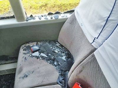 大巴車被開走后,留下滿地玻璃碴。記者李康王亞鴿攝影