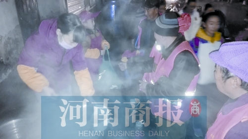 剛開始,她和隊友在鄭大一附院對面的立交橋下發(fā)粥,后來她就在西十里鋪84路公交站臺旁設(shè)了發(fā)粥點。現(xiàn)在,他們的愛心團隊有46人,開設(shè)了四個發(fā)粥點,另外兩個是姚寨發(fā)粥點和冉屯路電廠路口發(fā)粥點。