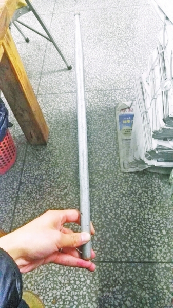 隨后,記者見到了校方提供的打?qū)W生的工具,是一個鼓槌,外表涂有銀色的漆,看起來像是鐵質(zhì)的,校方稱學(xué)校沒有鋼管類的教鞭等。