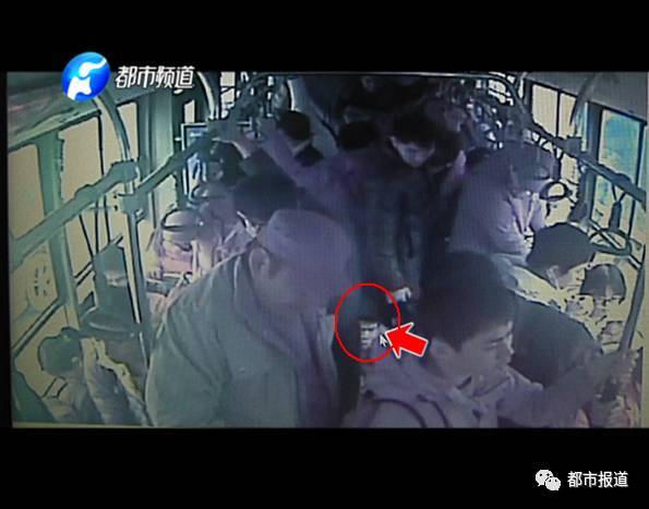 這是發(fā)生在鄭州市B12路公交車上的監(jiān)控視頻畫面,上午十點多,車廂內的乘客很多。