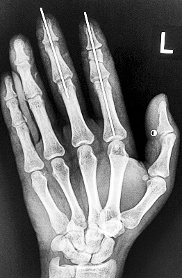 術(shù)后X光顯示,骨骼對位良好。