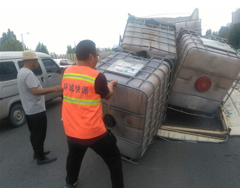 27日下午2時(shí)30分左右,中原區(qū)三官?gòu)R辦事處巡防隊(duì)員李玉章等人,巡邏到西三環(huán)與中原路交叉口附近,突然聽到由北向南的高架橋上橋口處傳來劇烈的撞擊聲,跑過去一看,是一輛貨車撞在了限高桿上。隊(duì)員們發(fā)現(xiàn)貨車上拉的一些方形大桶掉落在上橋口處的車道里,導(dǎo)致其它車輛無法上橋,忙上前與環(huán)城快速管理處的工作人員一起,將這些大桶抬到路邊,清出一個(gè)車道,協(xié)助交警指揮車輛緩慢通過。