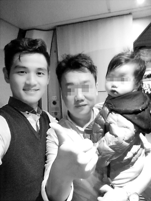 閆猛(左一)和被救女孩及其父親合影
