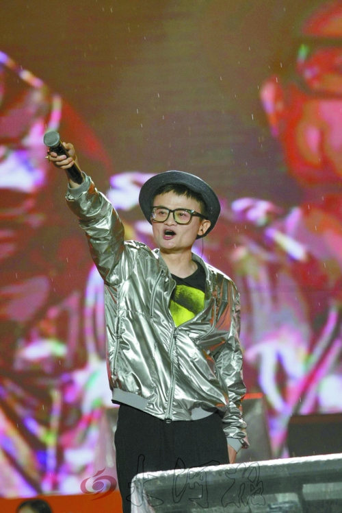 馬云演唱時(shí)與現(xiàn)場(chǎng)觀眾互動(dòng)